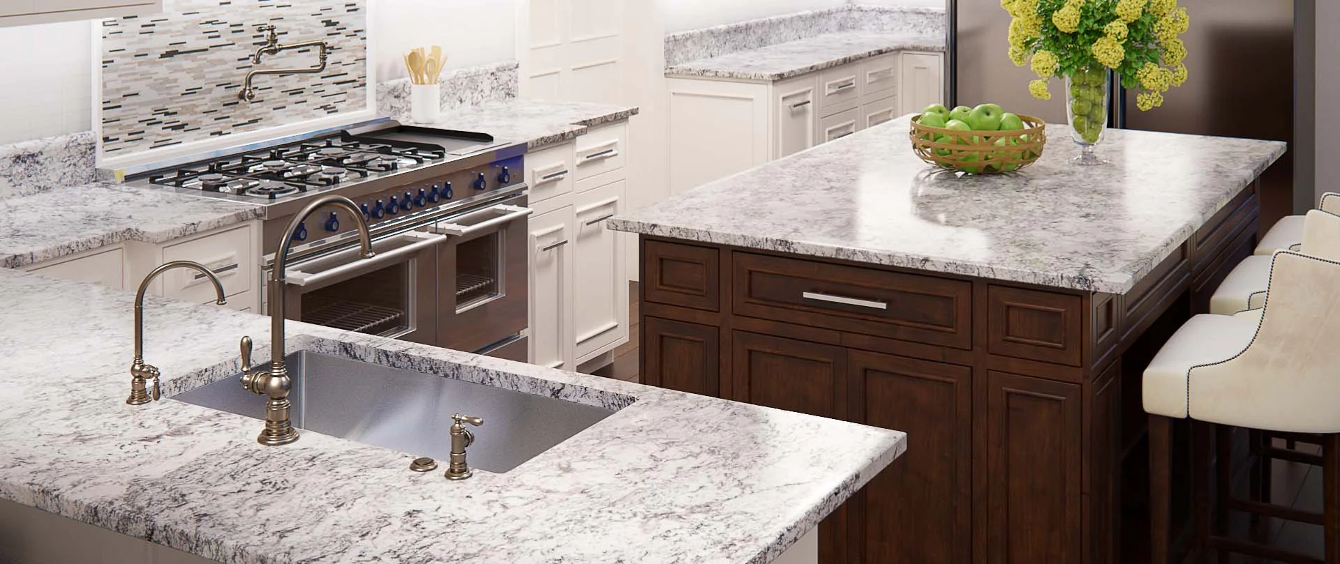 Our team of countertop specialists provides expert guidance and support throughout your project, from material selection (granite, marble, quartzite, Dekton quartz, etc.) and edge profile design to final installation.